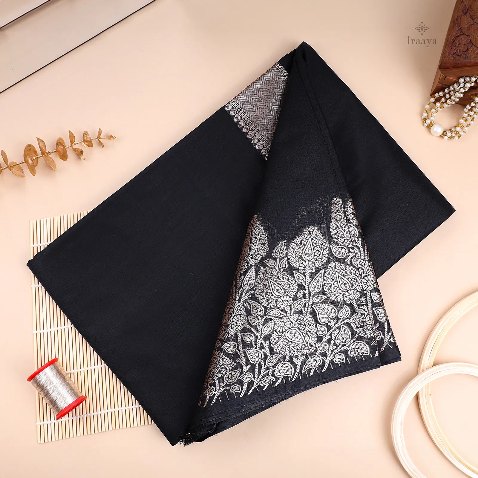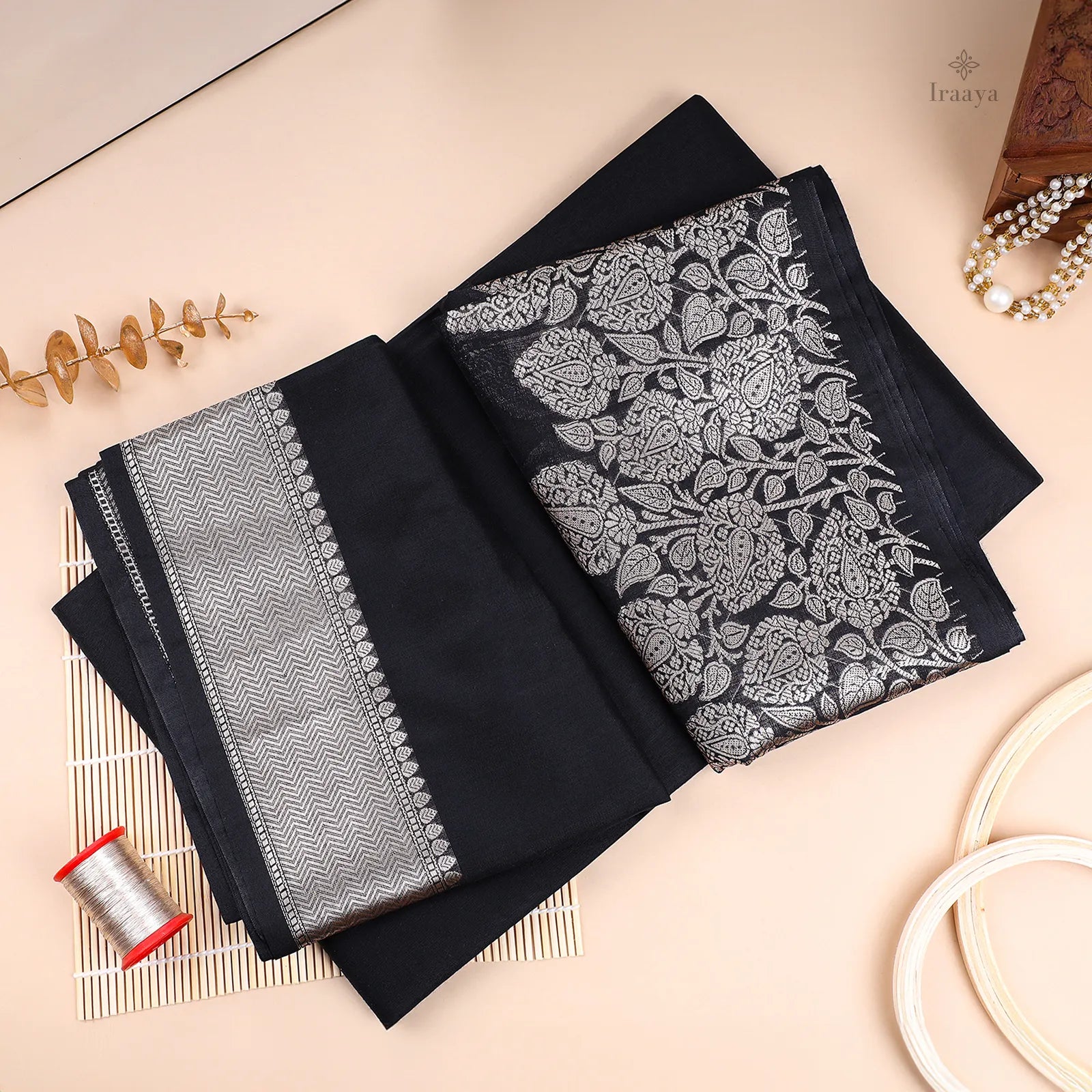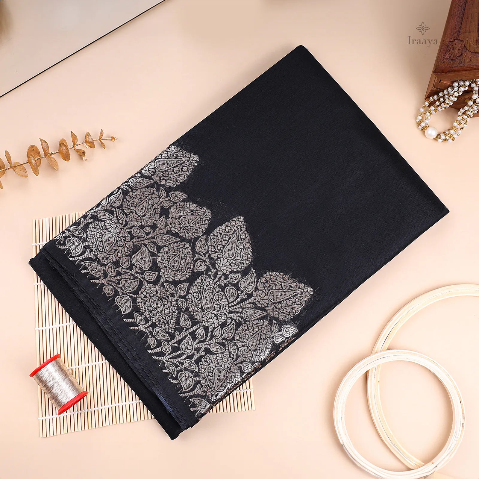 Color: Classic black with detailed silver zari work